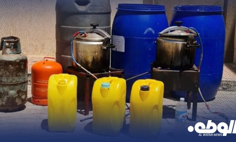 ضبط أعضاء جهاز مكافحة المخدرات والمؤثرات العقلية فرع بنغازي، شخص بحوزته مواد مخدرة كان يقصد الاتجار بها، بالإضافة إلى كشف مصنع لتصنيع الخمور المحلية نوع قرابة.
