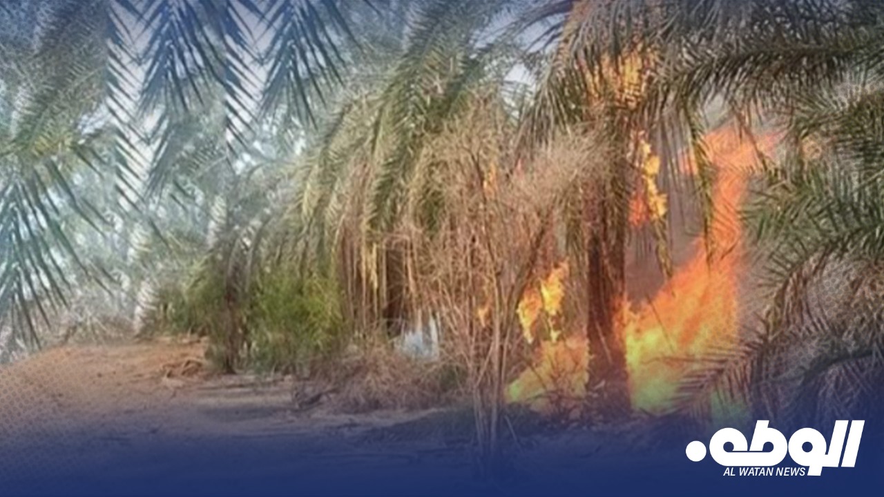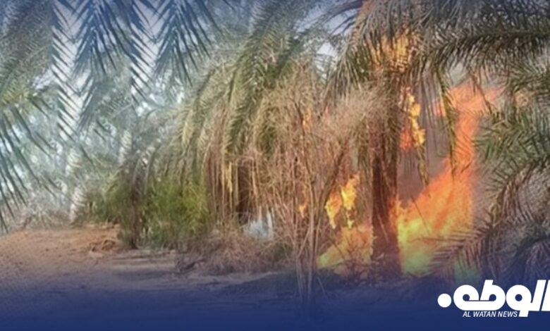 الحرائق تلتهم 70% من أشجار النخيل المحترقة في مزارع الكفرة جراء ارتفاع درجات الحرارة
