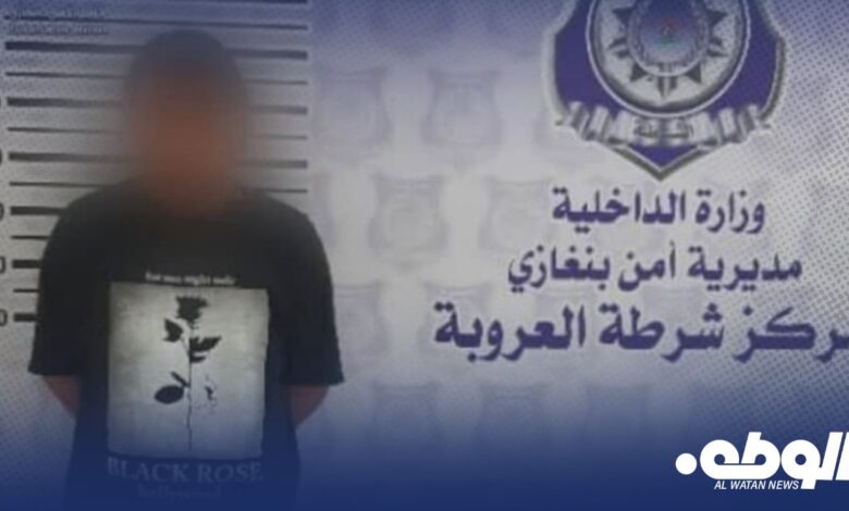 وتابعت ” أصدر رئيس مركز شرطة العروبة مقدم جاد الله ماضي تعليماته بضبط الشخص المطلوب وتم خروج أعضاء التحريات بإمرة ملازم عمر الفاخري وتمكنوا من ضبط الشخص المطلوب والإنتقال به إلى المركز تبين أنه يُدعى ر.ن.م. من مواليد 1989 ليبي الجنسية .