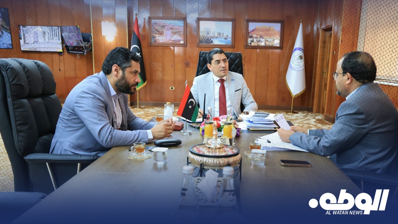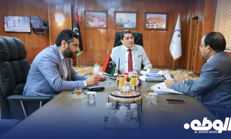 تابع وزير العمل والتأهيل بالحكومة الليبية عبدالله الشارف أرحومة خلال الاجتماع الذي عقده مع مدير إدارة التدريب والتأهيل المهني بالوزارة عبدالله موسى، سير عمل الإدارة.