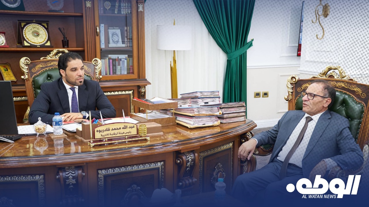 عقد رئيس هيئة الرقابة الإدارية، عبدالله قادربوه، اجتماعاً مع وزير التعليم العالي والبحث العلمي بالحكومة المنتهية عمران القيب، وذلك لمناقشة عدد من الملفات المتعلقة بالقطاع، كالمرتبات والإجازات العلمية ومنح الموفدين، وموضوع تسهيل الإجراءات مع مصرف ليبيا المركزي.