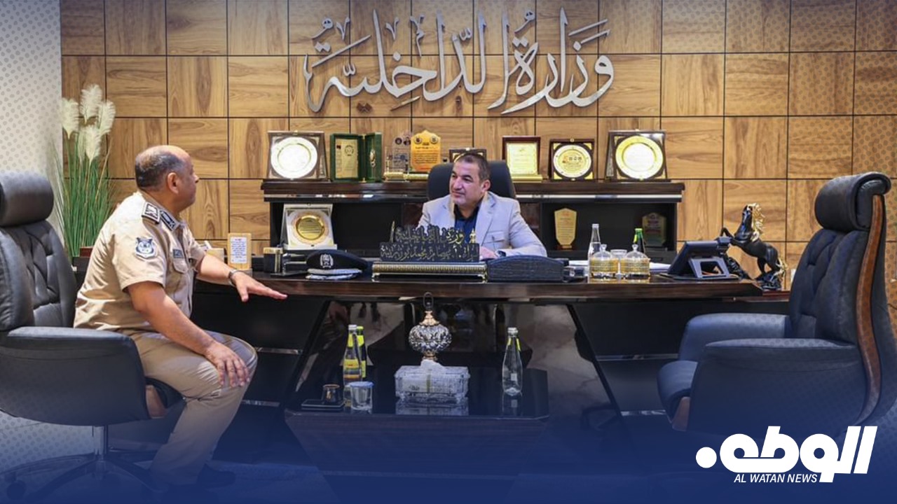 بحث وزير الداخلية في الحكومة الليبية اللواء “عصام أبوزريبة” اليوم الاثنين مع مدير أمن أمساعد، اللواء “عمران بريك”، في مكتبه بديوان عام الوزارة ببنغازي الوضع الأمني في البلدية وآليات ضبط الأمن والحد من الهجرة غير الشرعية والتهريب، وسبل مكافحة هذه الظواهر، بالإضافة إلى استعراض التحديات والمشاكل الأمنية واحتياجات المديرية لتذليلها وضمان قيام رجال الداخلية بمهامهم على أكمل وجه لتحقيق الأمن والاستقرار وحفظ حدود الدولة.