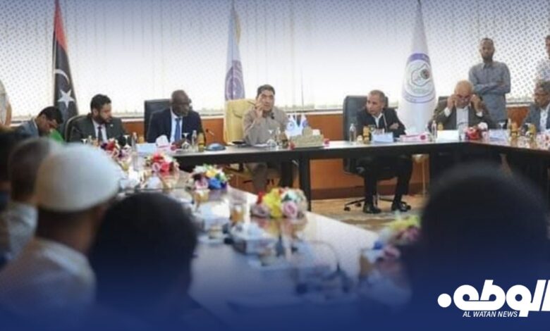 وبين الوزير إلى أن هذا الملف يحظى بمتابعة شخصية من القائد العام للقوات المسلحة، المشير خليفة بلقاسم حفتر، ورئيس مجلس الوزراء، الدكتور أسامة حماد، ووزارة العمل والتأهيل، لضمان حصول العمال على حقوقهم وتوفير حياة كريمة لهم ولعائلاتهم، أسوة بباقي الموظفين الليبيين. وأكد الوزير أن هذا الاجتماع يمثل فرصة لطرح أي مقترحات تفيد في إقفال هذا الملف.