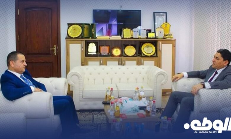 بحث وزير الخارجية والتعاون الدولي بالحكومة الليبية عبدالهادي الحويج في مكتبة وزير العمل والتأهيل عبد الله الشارف ارحومة التعاون المشترك بين الوزارتين خاصة في مجال بناء القدرات ورفع الكفاءات للشباب الليبي وخاصة الباحثين عن العمل منهم اضافة إلى اهمية الاستفادة من تجارب دول العالم في ميادين التدريب والعمل المختلفة وذلك بهدف فتح فرص العمل لهم والولوج الي سوق العمل واهمية تنويع دول التدريب لما فيه فائدة للشباب الليبي .