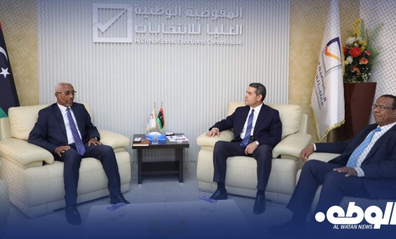 استقبل رئيس مجلس المفوضية الوطنية العليا للانتخابات عماد السايح صباح اليوم الثلاثاء النائب الأول لرئيس مجلس الدولة مسعود عبيد وعضو المجلس عبد القادر حويلي وذلك في ديوان مجلس المفوضية بطرابلس.