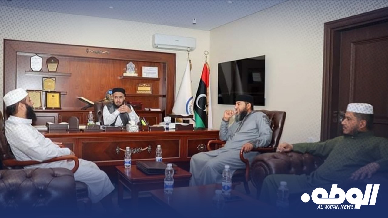 بحث رئيس الهيئة العامة للأوقاف والشؤون الإسلامية بالحكومة الليبية عاطف العبيدي، مع مدير إدارة الدراسات والبحوث العلمية سعد الحامدي ، في مقر الهيئة بمدينة بنغازي، سبل تطوير العمل البحثي والعلمي.