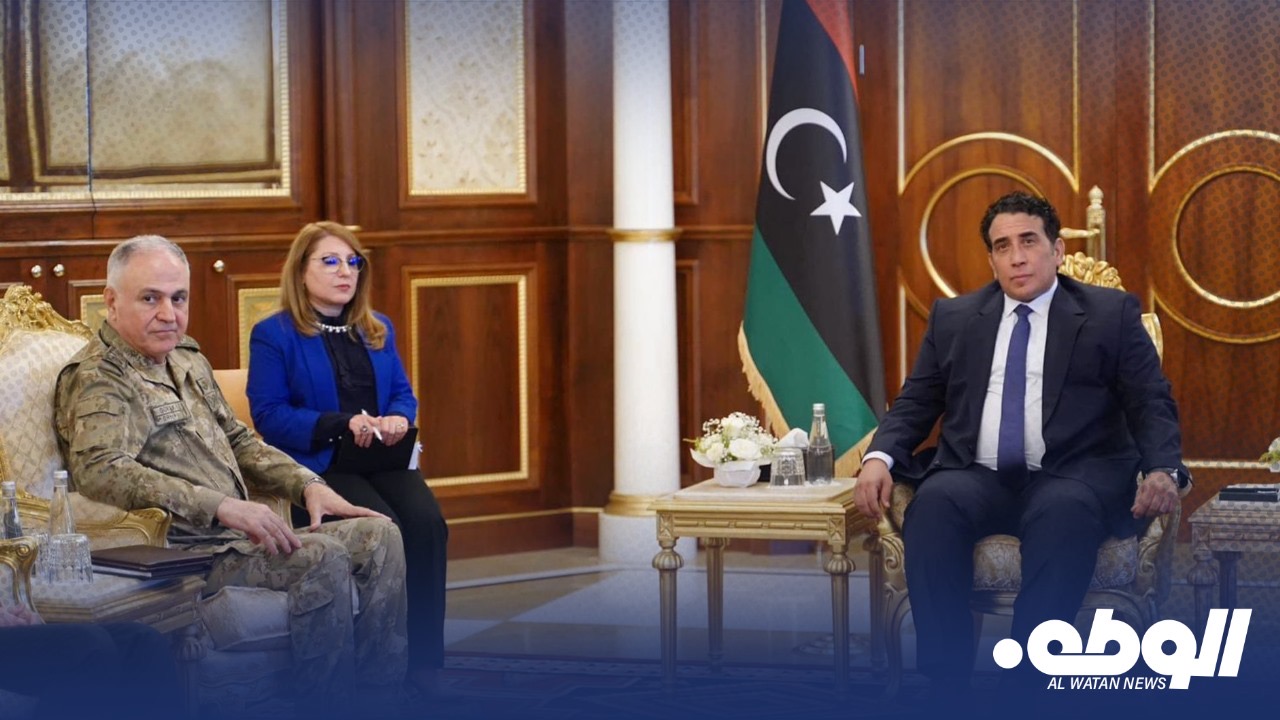 استقبل رئيس المجلس الرئاسي، محمد المنفي، اليوم الأحد، رئيس الأركان العامة للجيش التركي فريق أول، “متين جوراك”، والوفد المرافق له، بحضور رئيس الأركان العامة فريق أول ركن، “محمد الحداد”.
