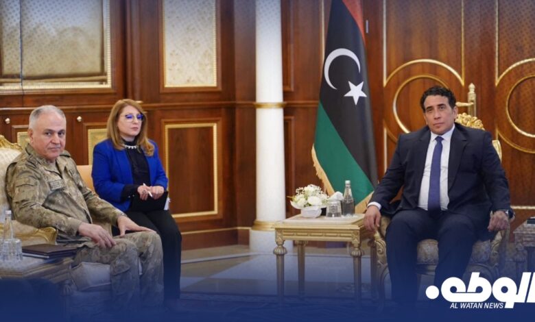 استقبل رئيس المجلس الرئاسي، محمد المنفي، اليوم الأحد، رئيس الأركان العامة للجيش التركي فريق أول، “متين جوراك”، والوفد المرافق له، بحضور رئيس الأركان العامة فريق أول ركن، “محمد الحداد”.