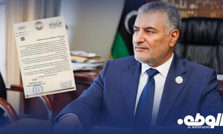 طالب رئيس مجلس الدولة محمد تكالة، من محافظ مصرف ليبيا المركزي الصديق الكبير، بعدم تنفيذ قانون الميزانية للعام الحالي على النحو الذي صدر به؛ لعدم مشروعيته، وإلى ضرورة التقيد بالموقف الرافض لإقراره،والذي يأتي تمسكاً بأعمال صحيح القانون، وانحيازاً إلى مصالح الوطن والمواطن.