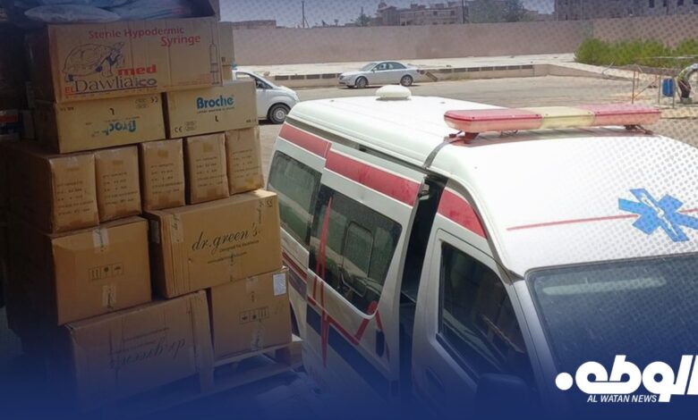 وقال الجهاز عبر صفحتها على الفيسبوك إنه سلم العيادة المجمعة سبها، شحنةً من المستلزمات العامة والمحاليل الوريدية وأمصال مضادة لسموم العقارب، وسلم مكتب الصيدلة زويلة، شحنةً من المستلزمات العامة.