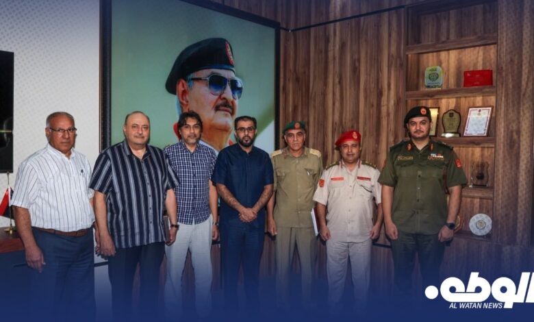 عقدت الأمين العام للقيادة العامة الفريق خيري التميمي اجتماعا بحضور رئيس الحكومة الليبية الدكتور أسامة حماد، ومدير إدارة الحسابات العسكرية الفريق عطية الشريف، لمناقشة توجيهات القائد العام للقوات المُسلحة المشير أركان حرب “خليفة أبوالقاسم حفتر” بشأن تفعيل قانون التقاعد العسكري والذي يشمل جميع أفراد القوات المسلحة العربية الليبية بالمناطق الشرقية والغربية والجنوبية.
