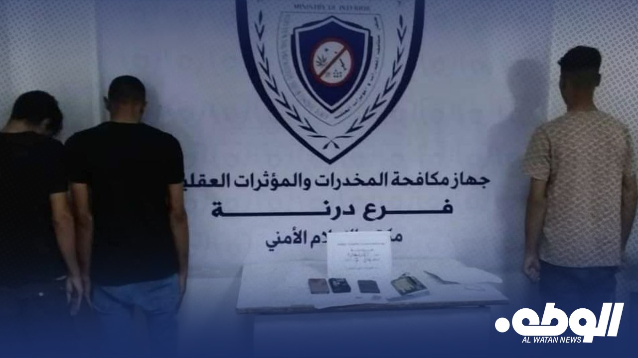 وفي سياق متصل، تمكن أعضاء فرع جهاز مكافحة المخدرات والمؤثرات العقلية في درنة من ضبط تشكيل عصابي يتكون من ثلاثة أفراد متورطين في ترويج المخدرات بالمدينة. وأفاد الجهاز في بيان له اليوم الجمعة، أن عناصر الفرع ضبطوا بحوزة المتهمين قطعة كبيرة من مخدر الحشيش بالإضافة إلى أقراص المؤثرات العقلية، وتم اتخاذ الإجراءات القانونية حيال المتهمين تمهيدًا لإحالتهم للنيابة العامة.