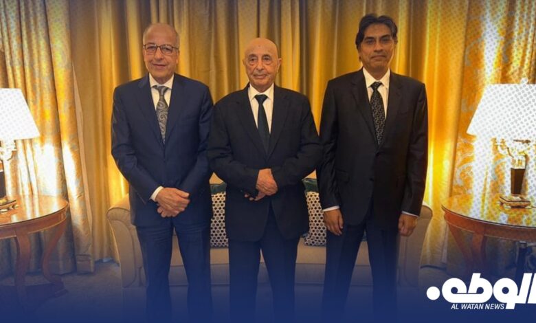 التقى رئيس مجلس النواب المستشار عقيلة، مع محافظ مصرف ليبيا المركزي الصديق عمر الكبير ونائبه مرعي مفتاح، والفريق المرافق لهما، اليوم السبت في مدينة القاهرة.