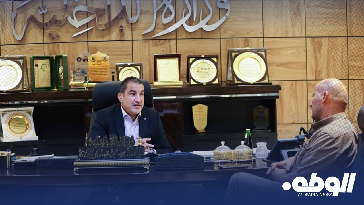اجتمع وزير الداخلية، اللواء عصام أبوزريبة اليوم في مكتبه بديوان الوزارة مع عضو مجلس النواب عن دائرة توكرة، سعيد سباقة
