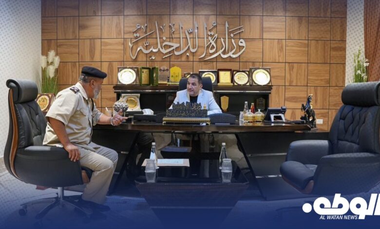 اجتمع وزير الداخلية بالحكومة الليبية، اللواء “عصام أبوزريبة”، مع مدير أمن جردس العبيد، العميد “عطية عبدالكريم بوهديمة”، لمناقشة سير العمل الأمني في المناطق الواقعة ضمن اختصاص المديرية.