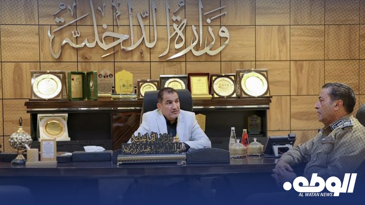 اجتمع اليوم وزير الداخلية اللواء عصام أبوزريبة ، مع مدير أمن بنغازي اللواء أحمد الشامخ، ، بمكتبه في ديوان الوزارة ببنغازي. تمحور اللقاء حول مناقشة الوضع الأمني في نطاق مديرية أمن بنغازي، بما في ذلك التحديات التي تواجه منتسبي المديرية أثناء أداء واجباتهم والحلول المقترحة لتعزيز الأمن والاستقرار في المدينة وضواحيها.