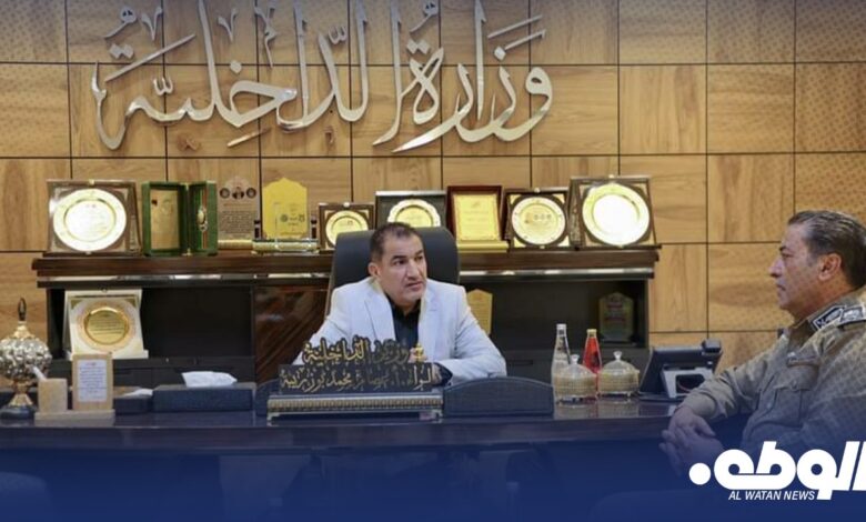 اجتمع اليوم وزير الداخلية اللواء عصام أبوزريبة ، مع مدير أمن بنغازي اللواء أحمد الشامخ، ، بمكتبه في ديوان الوزارة ببنغازي. تمحور اللقاء حول مناقشة الوضع الأمني في نطاق مديرية أمن بنغازي، بما في ذلك التحديات التي تواجه منتسبي المديرية أثناء أداء واجباتهم والحلول المقترحة لتعزيز الأمن والاستقرار في المدينة وضواحيها.