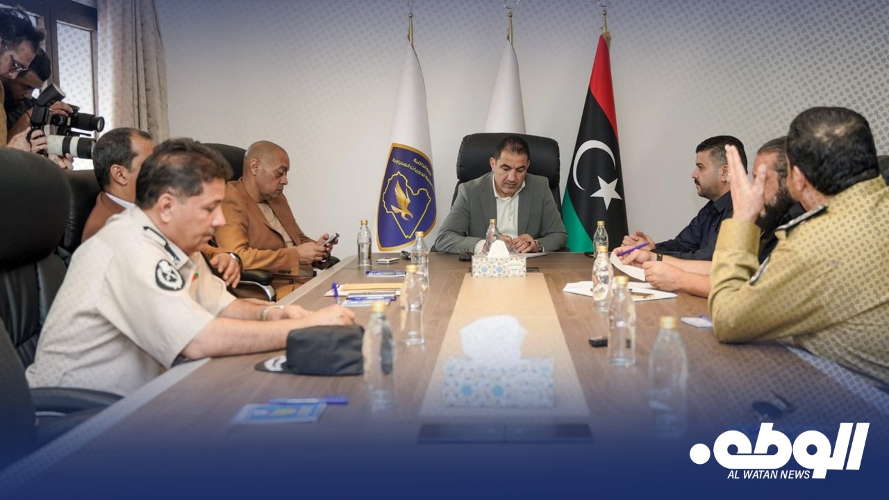 عُقد اليوم الأحد بمقر الإدارة العامة للدوريات الصحراوية اجتماع أمني موسع برئاسة وزير الداخلية اللواء عصام أبوزريبة، وبحضور الوكيل فرج اقعيم، ورئيس جهاز الأمن الداخلي الفريق أسامة الدرسي، بالإضافة إلى مدير أمن بنغازي ورؤساء الأجهزة الأمنية المختلفة، من بينها جهاز البحث الجنائي، وجهاز مكافحة المخدرات، وإدارة أمن المنافذ، وإدارة الدوريات الصحراوية.