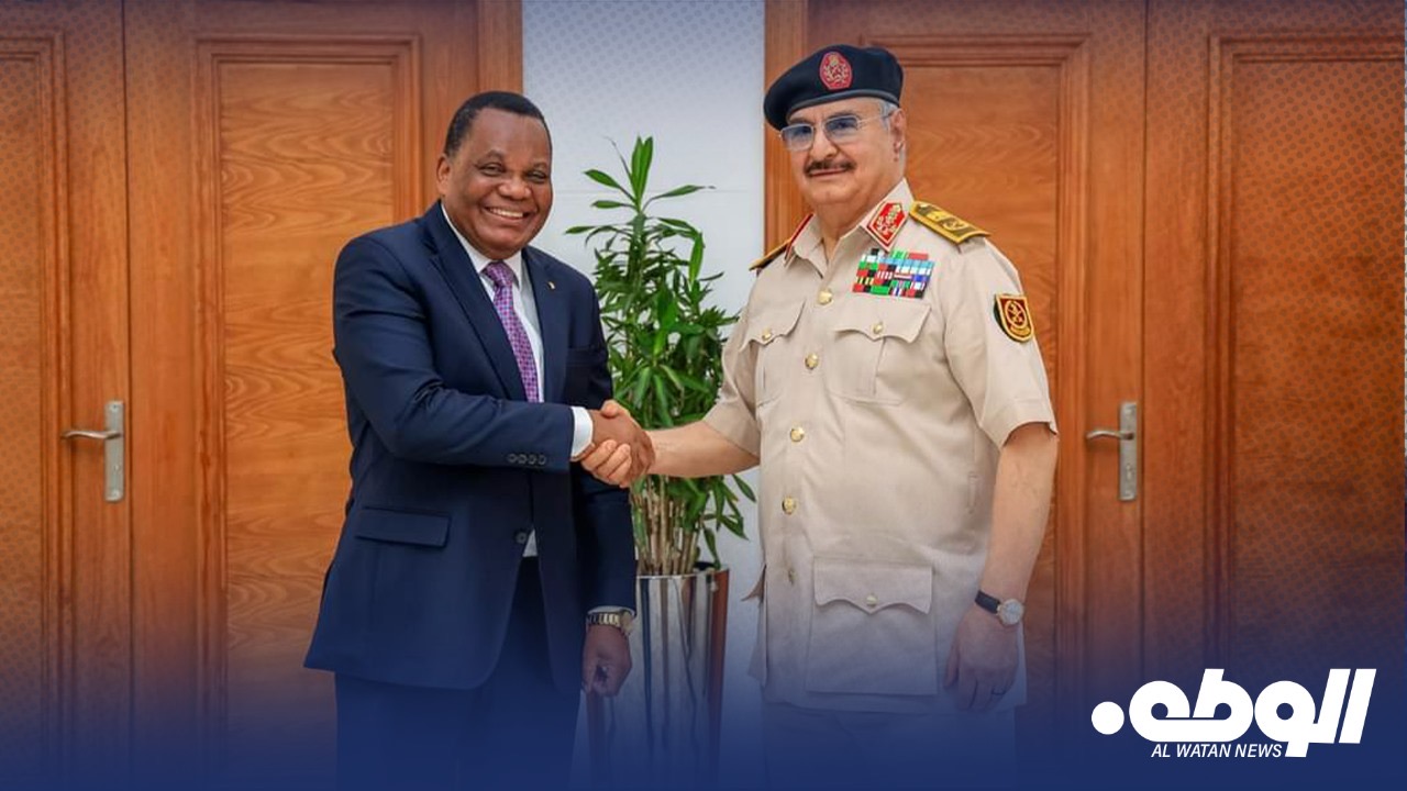 وخلال اللقاء، رحب المشير حفتر بالوفد الزائر، معبراً عن تقديره لجهود جمهورية الكونغو برازافيل ومفوضية الاتحاد الأفريقي في السعي لإيجاد حلول للأزمة الليبية.