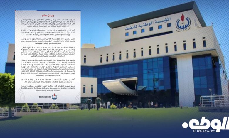 وأكدت المؤسسة أنها في تواصل مستمر ومكثف مع جميع الأطراف المعنية، معربة عن أملها في انفراج قريب للأزمة. وأوضحت أنها تبذل جهودًا حثيثة لتقليل الأضرار الناجمة عن الإقفالات، ولتخفيف وطأتها على المواطنين، مشيرة إلى أنها تعمل بكل طاقتها لضمان استمرار ضخ النفط والغاز، لتشغيل المرافق الحيوية، وتوفير الوقود والمحروقات للسوق المحلي.