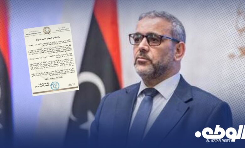 أصدر رئيس مجلس الدولة خالد المشري، بياناً رد فيه على إعلان محمد تكالة بشأن تأجيل جولة الانتخابات إلى 20 أغسطس واصفاً هذا الإعلان بأنه “باطل” وصادر عن “غير ذي صفة”.
