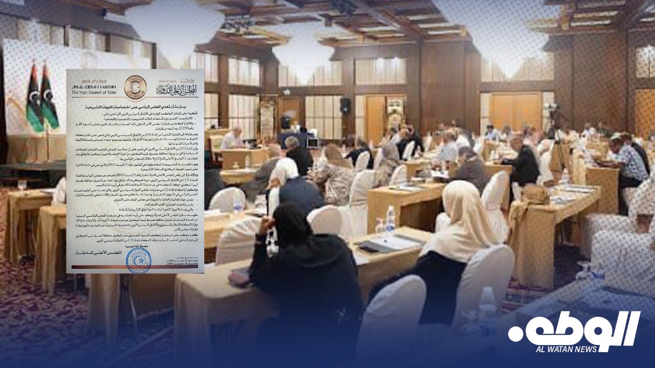 أكد مجلس الدولة، في بيان له بشأن تعدي المجلس الرئاسي على اختصاصات الجهات التشريعية، على أن ما تم نشره في صفحة المجلس الرئاسي الرسمية، هو إجراء منعدم لا قيمة له، ولا يعتد به، وذلك وفقاً لأحكام الإعلان الدستوري والاتفاق السياسي الليبي والتفاهمات السياسية بين المجلسين أبوزنيقة وقرارات مجلس الأمن.