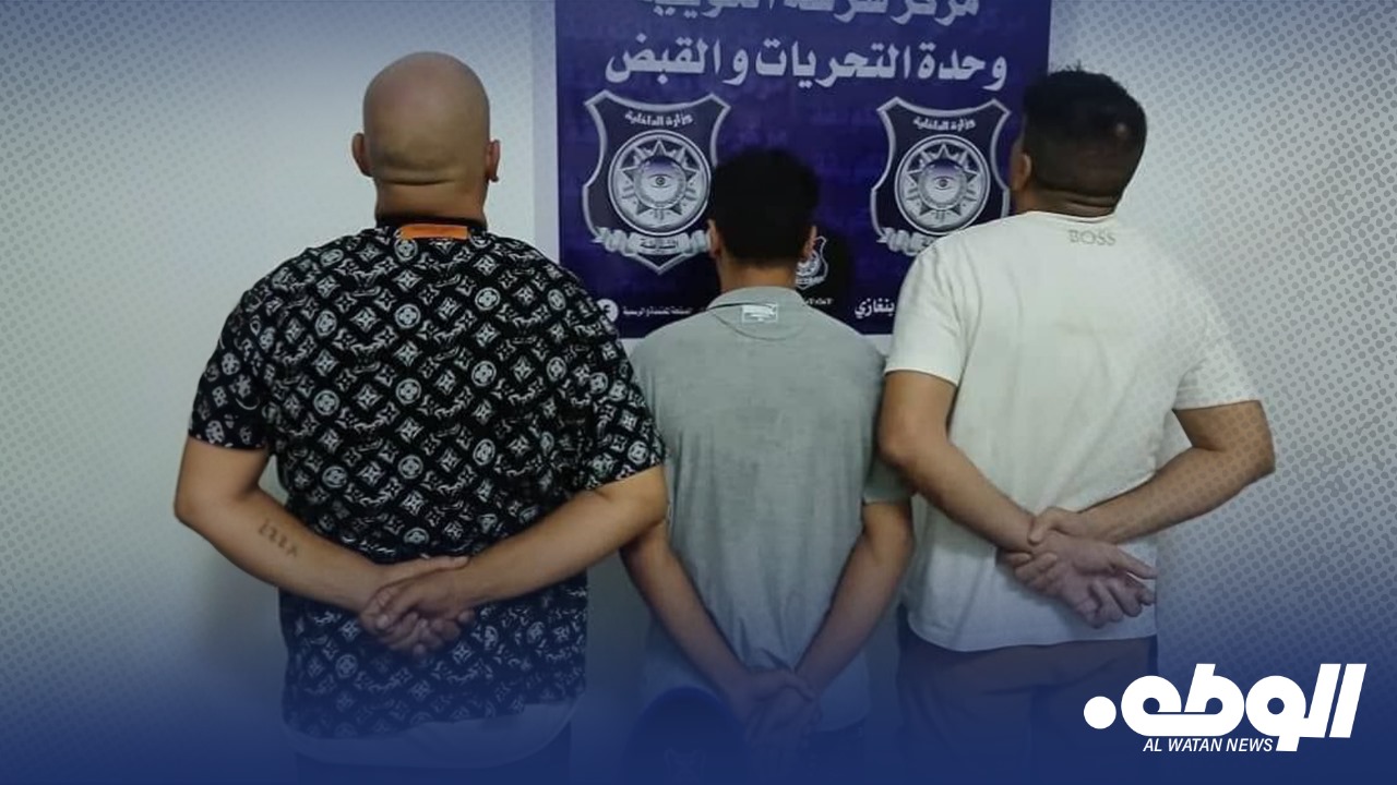 مركز شرطة الكويفية يضبط ثلاثة متهمين بالإتجار بالمخدرات في بنغازي
