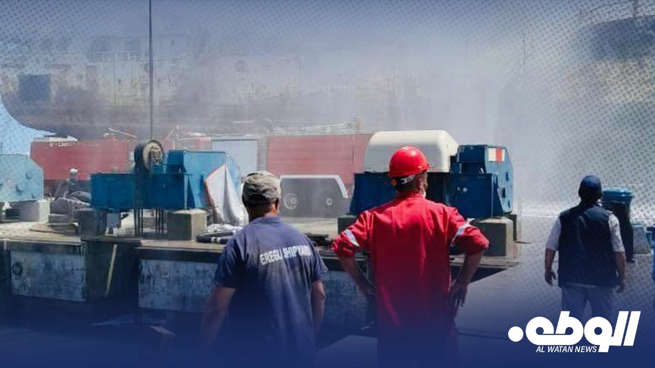 شاركت وحدات قسم الإطفاء بمدينة مصراتة، في عملية إخماد حريق ضخم نشب في ناقلة صيد كانت تخضع للصيانة بالقرب من الرصيف 19.
