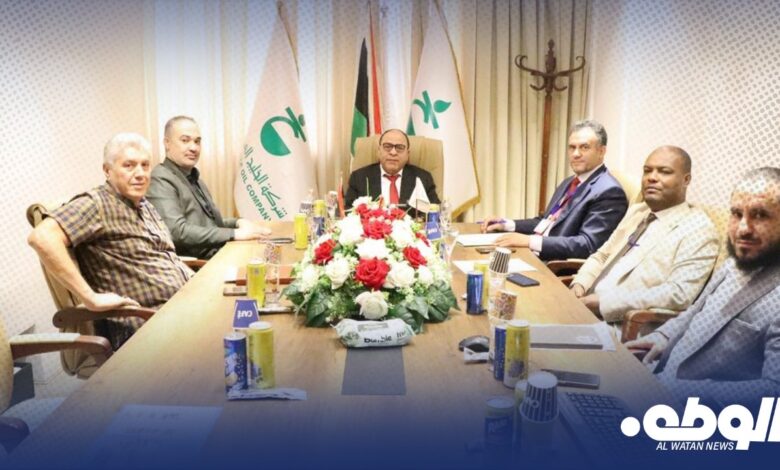 اﺳﺘﻘﺒﻞ رئيس ﻟﺠﻨﺔ إدارة ﺷﺮﻛﺔ اﻟﺨﻠﯿﺞ اﻟﻌﺮﺑﻲ ﻟﻠﻨﻔﻂ ﻣﺤﻤﺪ ﺑﺎﻟﻘﺎﺳﻢ ﺑﻦ ﺷﺘﻮان بمكتبة وﻓﺪاً ﻣﻦ اﻟﺸﺮﻛﺔ الوطنية ﻟﺘﻤﻮﯾﻦ اﻟﺤﻘﻮل واﻟﻤﻮاﻧﻲ اﻟﻨﻔﻄﯿﺔ ﺑﺮﺋﺎﺳﺔ اﻟﺪﻛﺘﻮر ﻓﺘﺤﻲ الحضوري رﺋﯿﺲ ﻟﺠﻨﺔ اﻹدارة وﺑﺤﻀﻮر أﻋﻀﺎء اﻟﻠﺠﻨﺔ الإدارة ﻣﺤﻤﺪ اﻟﻌﻮد ﻋﻀﻮ ﻟﺠﻨﺔ اﻹدارة ﻟﻠﻌﻤﻠﯿﺎت، والزروق المجدوب ﻋﻀﻮ ﻟﺠﻨﺔ اﻹدارة للشؤون اﻟﻤﺎﻟﯿﺔ وبحضور أحمد الزوي عضو لجنة الإدارة للمالية والموارد البشرية وخليفة شوايل مدير إدارة الخدمات بشركة الخليج العربي للنفط .