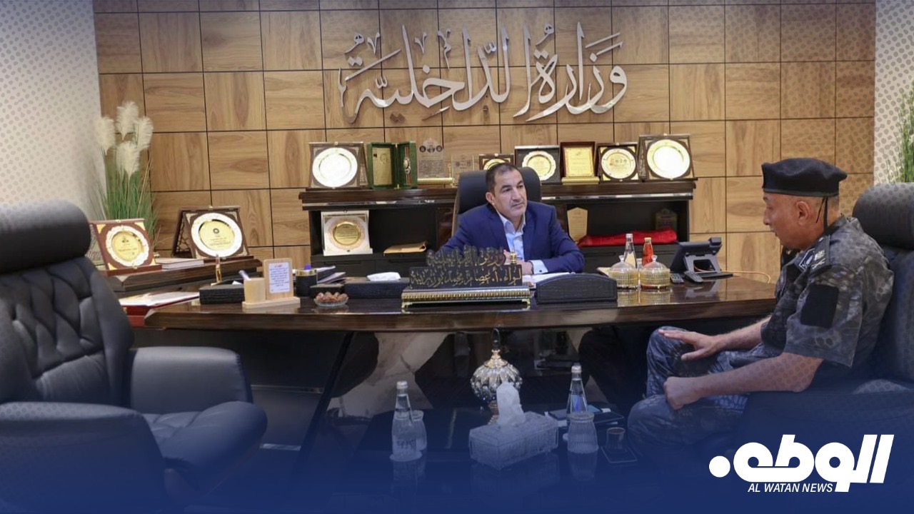 اجتمع وزير الداخلية بالحكومة الليبية ، اللواء “عصام أبوزريبة”، اليوم الثلاثاء، مع مدير أمن الكفرة، اللواء “حسن عبدالغني الجحاوي”، بمكتبة في مقر الوزارة، لمتابعة سير العمل الأمني في المديرية.