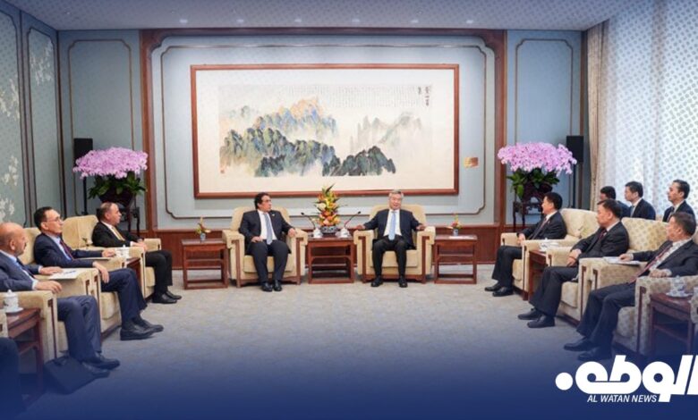 وتناول اللقاء، استكمال المحادثات التي جرت مع رئيس جمهورية الصين، بشأن إقامة شراكة إستراتيجية بين البلدين واستئناف الحوار السياسي، وجملة من المسائل والملفات الأخرى من بينها عودة السفارة الصينية واستئناف عملها بالعاصمة طرابلس، وعودة الشركات الصينية للعمل، بعد تهيئة الظروف المناسبة.