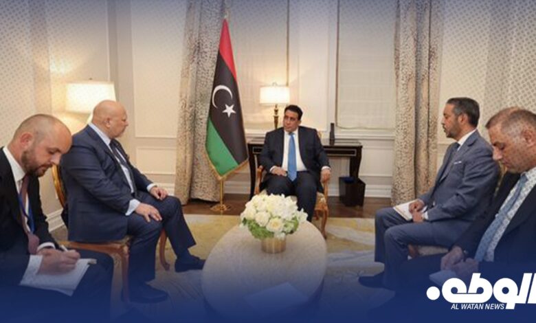 التقى رئيس المجلس الرئاسي، محمد المنفي، اليوم بمدينة نيويورك، المدعي العام للمحكمة الجنائية الدولية، “كريم خان”.