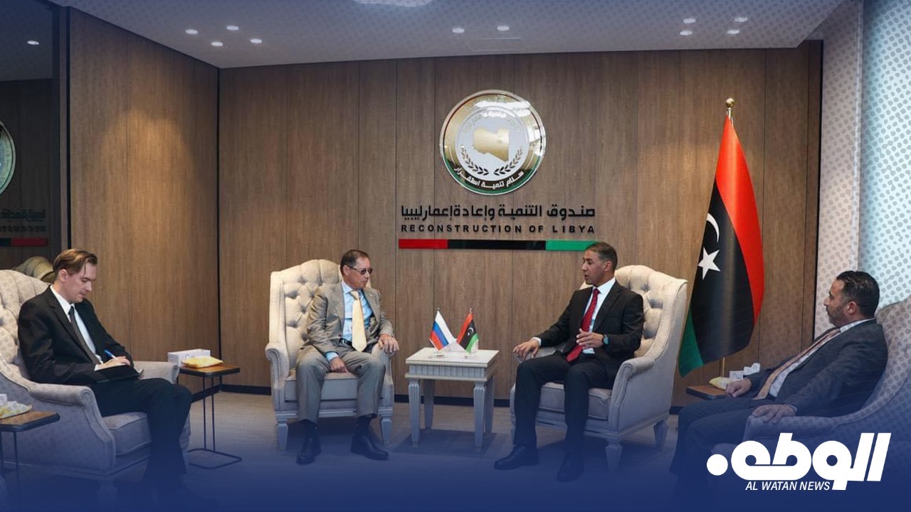 بحث مدير مكتب الشؤون الإدارية والمالية بصندوق التنمية وإعادة إعمار ليبيا سعد الزوي، ومدير إدارة التعاون الدولي عقيلة العبار، مع سفير جمهورية روسيا الاتحادية ايدار اغانين، سبل تعزيز التعاون بين البلدين في مجالات الإعمار والتنمية.