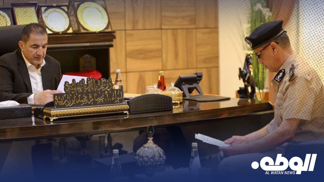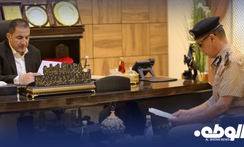 عقد وزير الداخلية بالحكومة الليبية اللواء عصام أبوزريبة، اجتماعًا مع مدير أمن أوجلة إجخرة، اللواء رمضان الزاوي، في مكتبه بديوان الوزارة.
