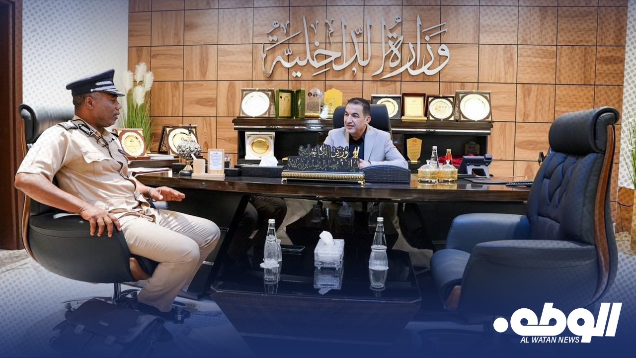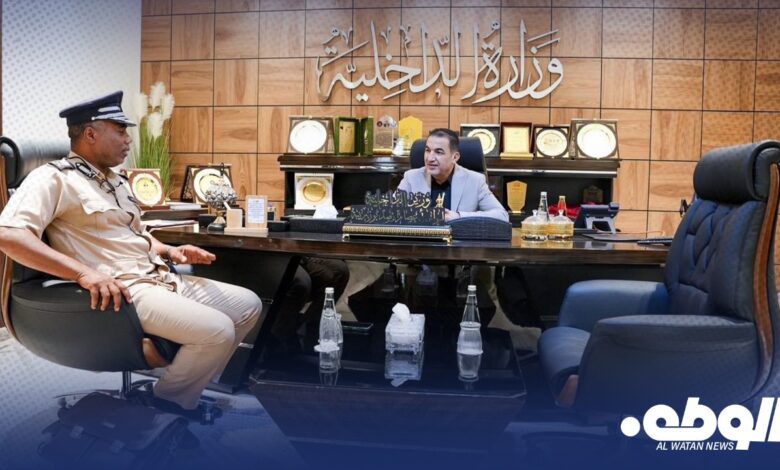 اجتمع وزير الداخلية، اللواء عصام أبوزريبة، مع رئيس ديوان الوزارة بالمنطقة الجنوبية، اللواء عبدالسلام الشريف، في مكتبه بديوان الوزارة ببنغازي.