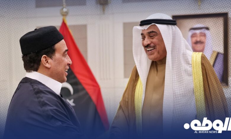 بدوره، أعرب المنفي عن تقديره لموقف دولة الكويت الثابت تجاه القضية الليبية، ودعمها الكامل للحل الليبي الليبي، مؤكداً مواصلة المحادثات مع كل الأطراف المعنية بليبيا بهدف التوصل لحل وتسوية تُفضي إلى انتخابات برلمانية ورئاسية تنهي كل المراحل الانتقالية.
