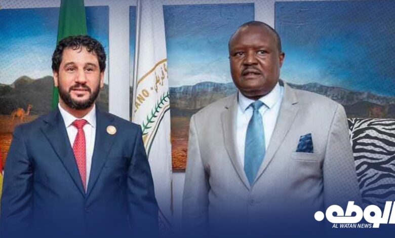 واستقل دومة، رئيس البرلمان الافريقي “فورتشن تشارومبيرا ” و أعضاء مجلس النواب الأعضاء في البرلمان الافريقي ” صالح قلمة ، أسماء الخوجة، يوسف الفاخري ، سالم قنان ، عبدالقادر يحيى ، بحضور نائب رئيس الديوان “د. رسمي بالروين”.