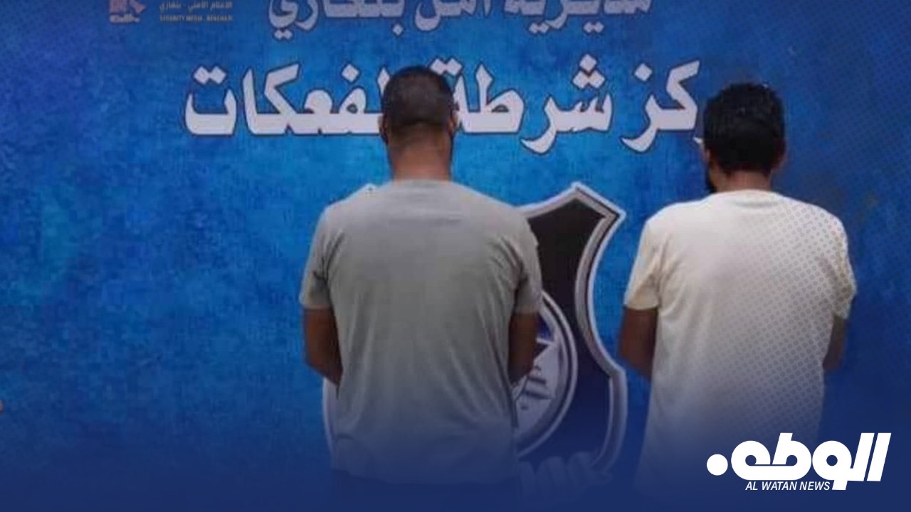 ألقى مركز شرطة الفعكات التابع لمديرية أمن بنغازي القبض على شخصين من الجنسية المصرية قاما بسرقة أغراض من منزل مواطن.