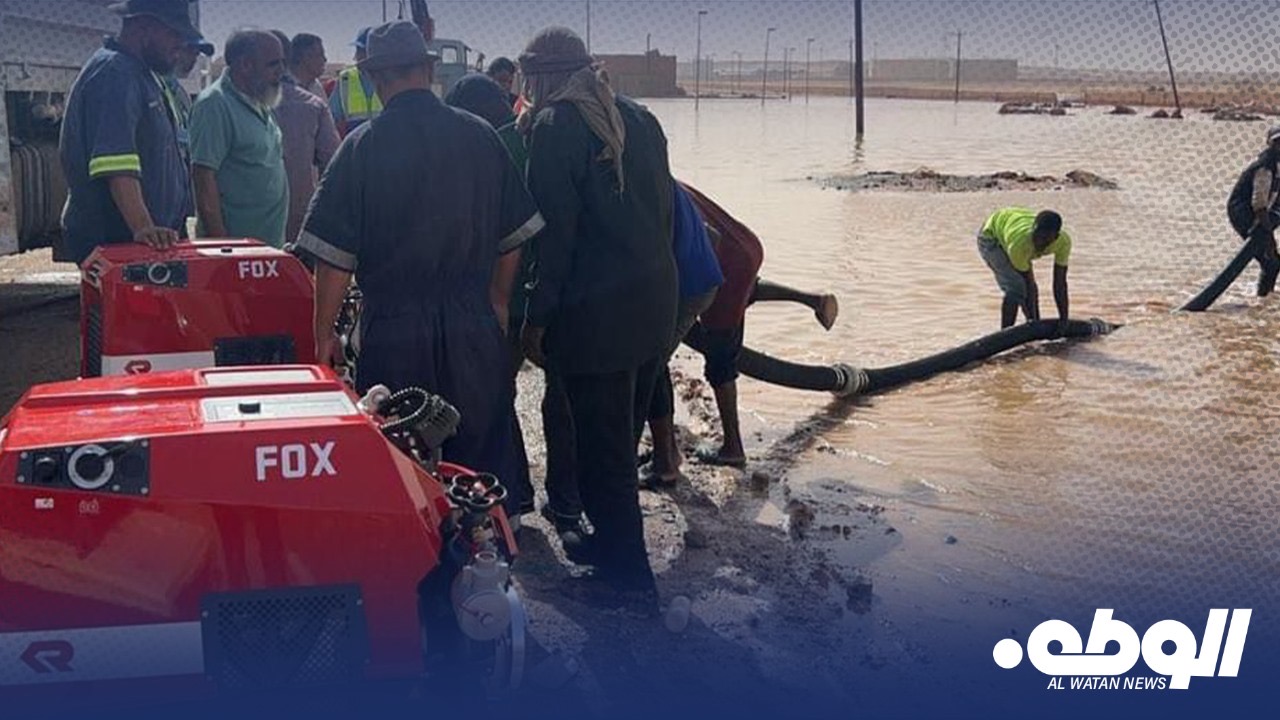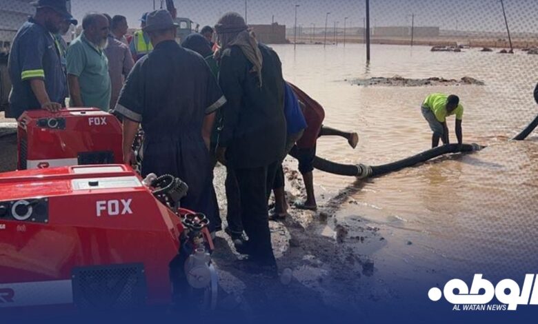 أعلنت شركة البريقة لتسويق النفط عن بدء عملية شفط المياه المتراكمة أمام مستودع سبها النفطي، والتي تسببت في إيقاف تشغيله نتيجة الأمطار الغزيرة التي شهدتها المدينة أمس.