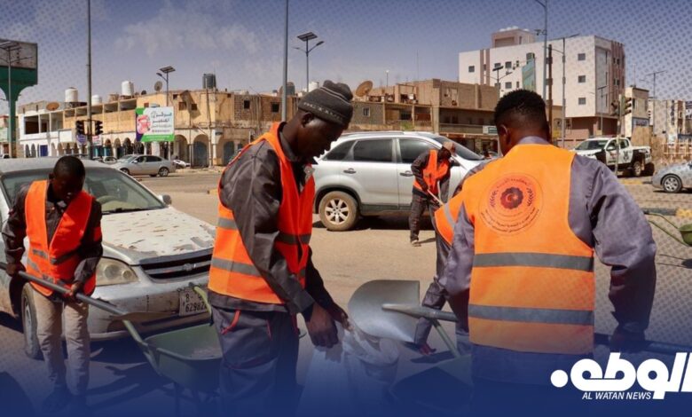 أطلق وزير العمل والتأهيل ورئيس لجنة الطوارئ والإستجابة السريعة بمدينة سبها ومدن ومناطق الجنوب الغربي عبدالله الشارف أرحومة عبر فريق الإستجابة السريعة حملة موسعة لتنظيف أحياء وشوارع مدينة سبها وازالة العوائق والاتربة والأوساخ والقمامة المتراكمة نتيجة لسقوط الأمطار الغزيرة مؤخراُ على مدينة سبها .