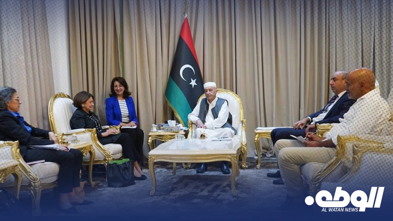 التقى رئيس مجلس النواب المستشار عقيلة صالح، وكيل الأمين العام للأمم المتحدة للشؤون السياسية وبناء السلام روز ماري دي كارلو، رفقة نائبة الممثل الخاص للأمين العام للأمم المتحدة القائمة بأعمال رئيس بعثة الأمم المتحدة للدعم في ليبيا ستيفاني خوري.