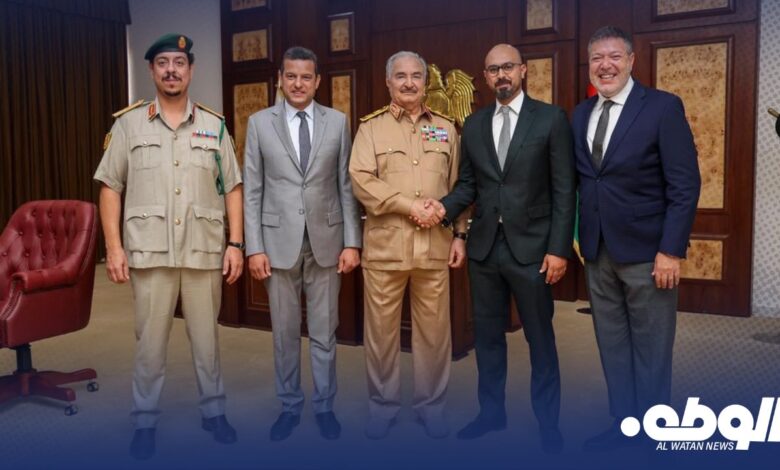 استقبل القائد العام للقوات المسلحة، المشير خليفة حفتر، في مكتبه بمقر القيادة العامة بنغازي، أعضاء مجلس إدارة معرض ليبيا بيلد، الذين أشادوا بنجاح المعرض في دورته التي أُقيمت في مدينة بنغازي.