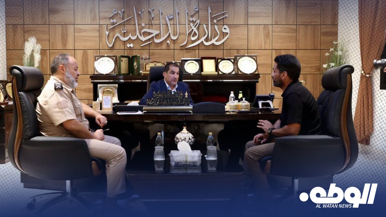 بحث وزير الداخلية بالحكومة الليبية عصام أبوزريبة، مع مدير إدارة المشروعات بالوزارة محمد الكزة، اليوم الاثنين، في مكتبه بمدينة بنغازي، حالة المرافق والمنشآت التابعة للوزارة في جميع المدن والمناطق.