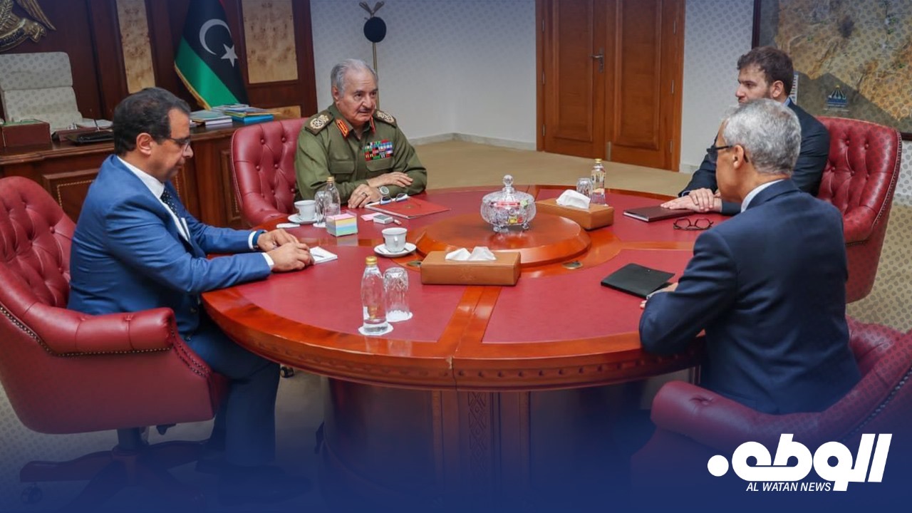 استقبل القائد العام للقوات المسلحة، المشير خليفة حفتر، في مكتبه بمقر القيادة العامة في بنغازي، سفير فرنسا لدى ليبيا، “مصطفى مهراج”.