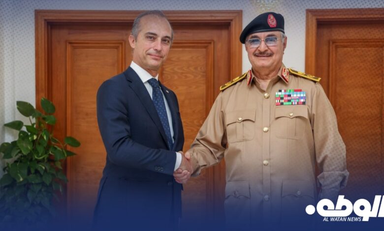 التقى القائد العام للقوات المسلحة، المشير أركان حرب خليفة حفتر، بسفير إيطاليا لدى ليبيا جانلوكا ألبيريني، وذلك لبحث آخر المستجدات السياسية في ليبيا.