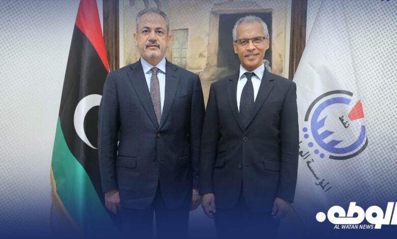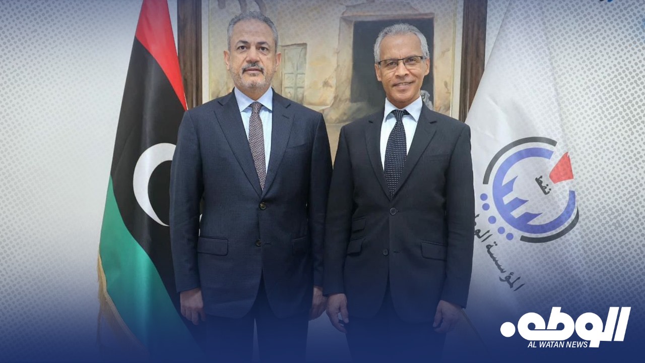 وتناول اللقاء الذي دار في مقر المؤسسة بطرابلس آليات التعاون المشترك بغية تحقيق الإستقرار والإستقلال الدائمين لقطاع النفط الليبي الأمر الذي ينتج ارتفاعاً في مستوى الإنتاج.