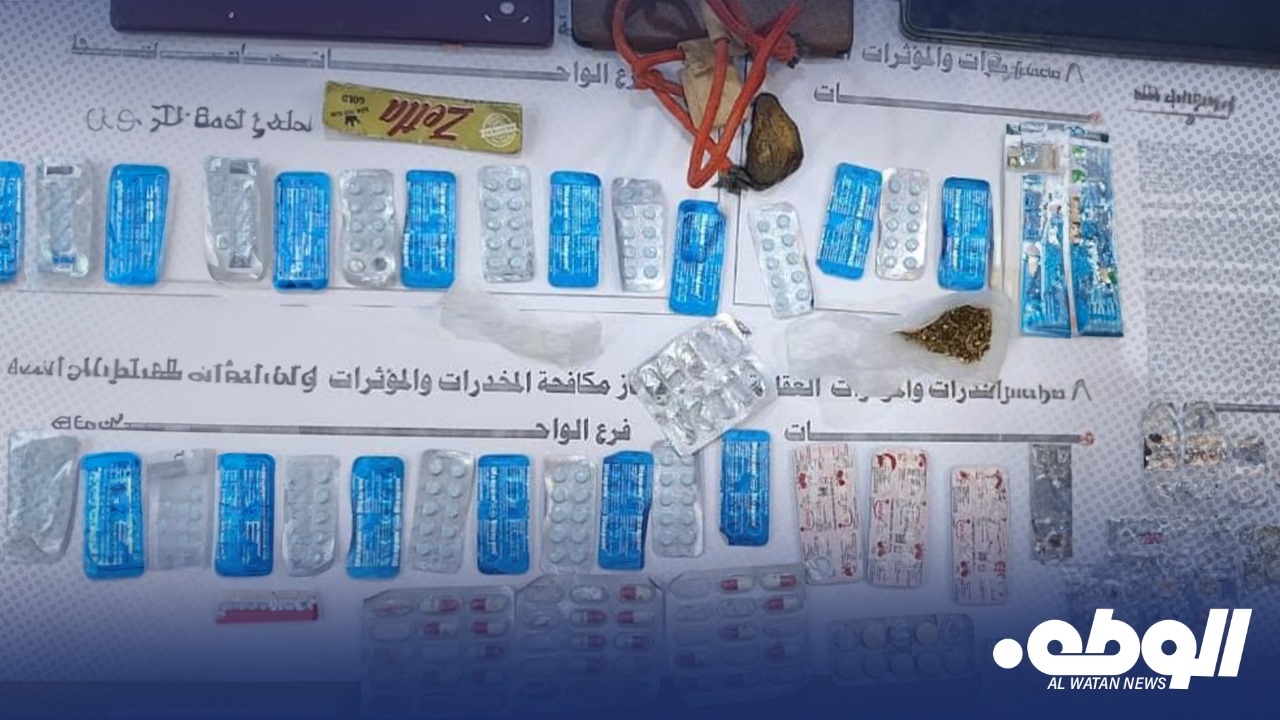 ضبط جهاز مكافحة المخدرات والمؤثرات العقلية، تشاديين في أوجلة بحوزتهما كميات كبيرة من المخدرات وأقراص مهدئة.