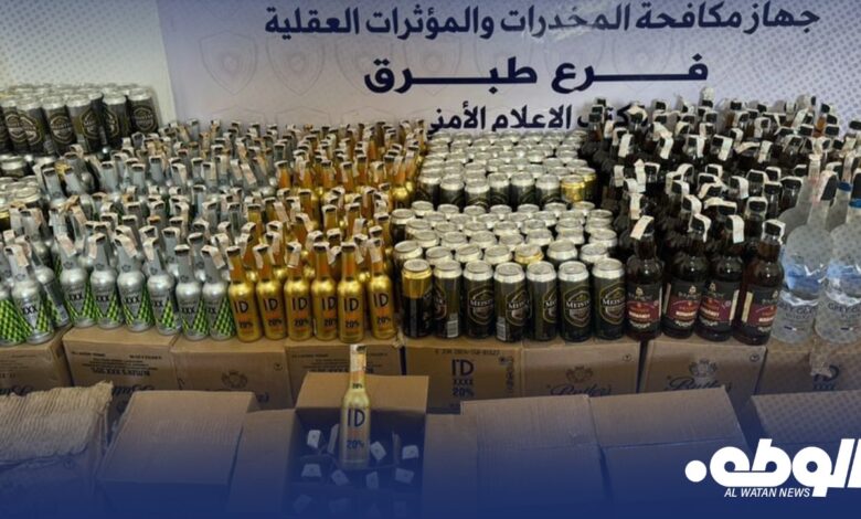 تمكن جهاز مكافحة المخدرات والمؤثرات العقلية فرع طبرق من ضبط كمية كبيرة من المشروبات الكحولية خلال مداهمة أمنية ناجحة في مدينة طبرق، المداهمة استهدفت منزل المدعو (ن.م.أ)، المولود في عام 1983 والمقيم في منطقة باب الزيتون.