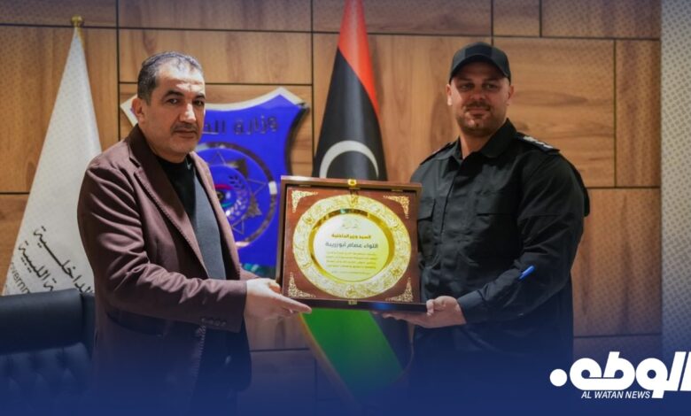 بحث وزير الداخلية بالحكومة الليبية عصام أبوزريبة، اليوم الأربعاء، مع رئيس الإدارة العامة لأمن السواحل فرع بنغازي سراج بوسته، في مكتبه بديوان عام الوزارة، جهود تعزيز الرقابة البحرية وتطوير إمكانيات حماية السواحل.