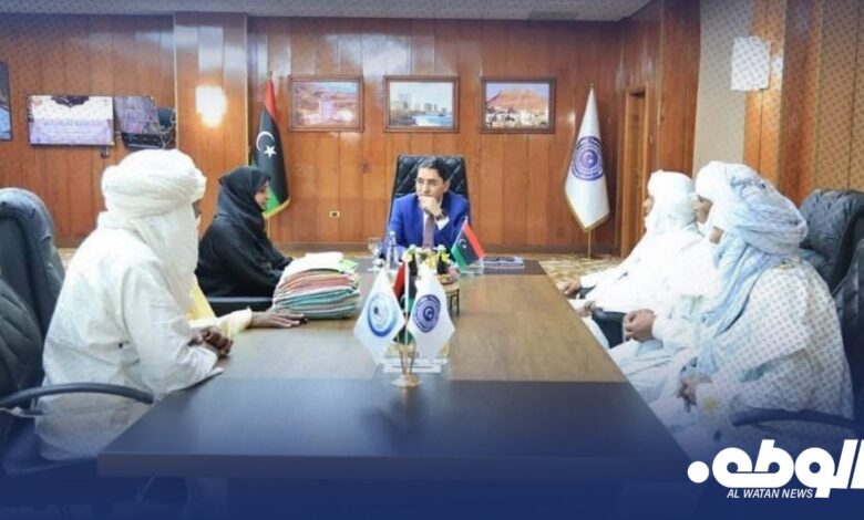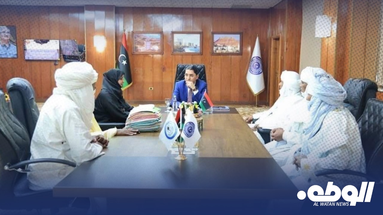 استقبل وزير العمل والتأهيل بالحكومة الليبية عبدالله الشارف أرحومة مساء امس الخميس بمكتبه في ديوان الوزارة بمدينة سرت فريق مركز تمكين الجنوب وشيوخ وأعيان الطوارق بحي الكرامة ( الطيوري ).